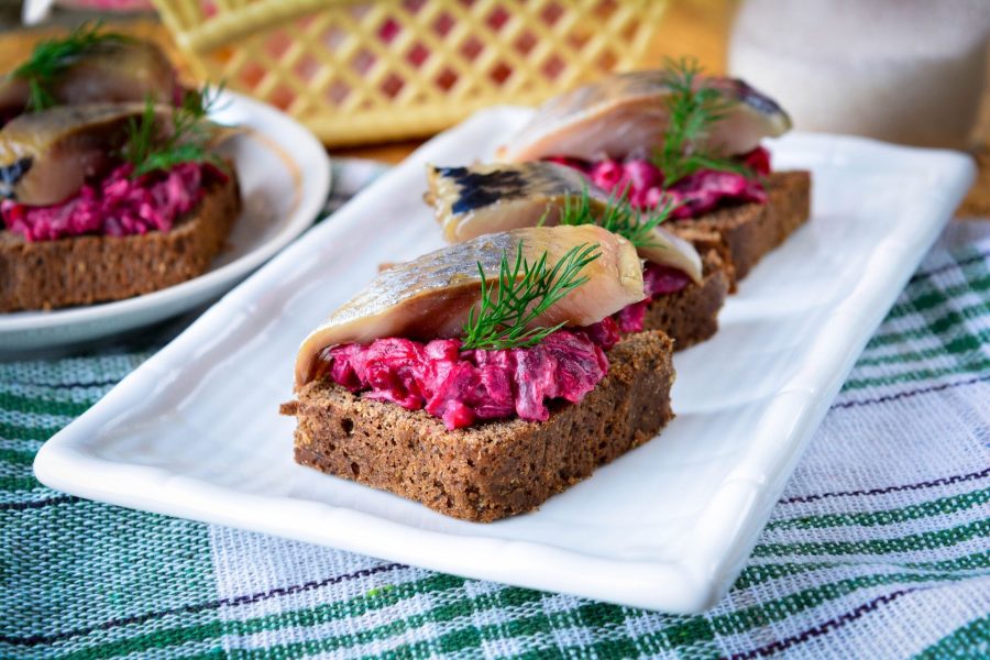 Бу килиэп үрдүгэр сүбүөкүлэлээх начыыҥкабытын, ол үрдүгэр тууһаммыт селедка куһуогун уурабыт, күөх луугунан, эбэтэр, петрушканан, эриэппэ луугунан  киэргэтэбит.