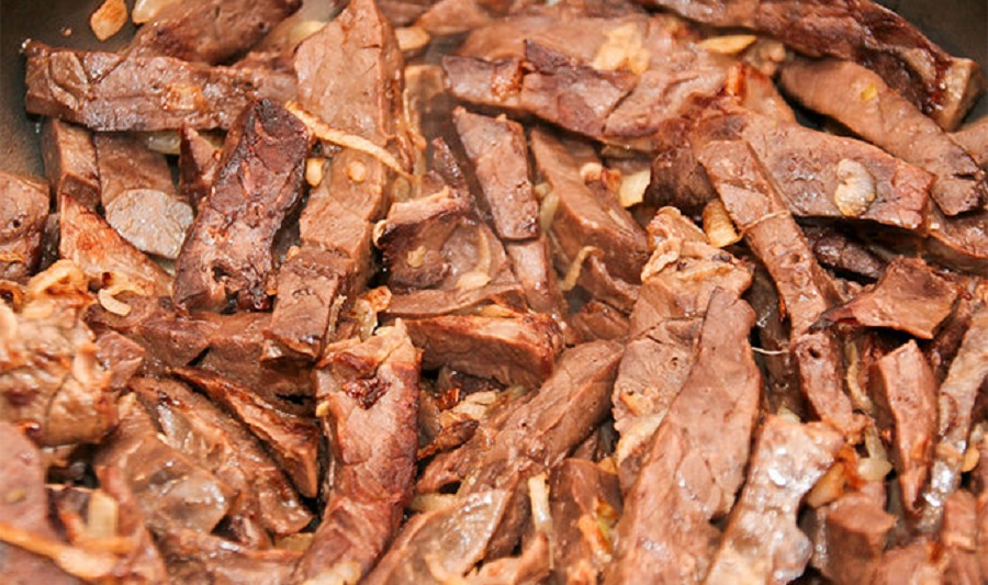 Сылгы тыҥатын бөдөҥ тымырдартан эрдэттэн ыраастаан баран, чараастык кырбастыыбыт. Тыҥаны ыраас, тымныы уунан саба кутан, икки чаас устата туруорабыт. Ол кэннэ тыҥаны көстүрүүлэҕэ уган, оргутан баран, чаастан итэҕэһэ суох буһарабыт. Эриэппэ луугу аҥардыы төгүрүктээн кырбаат, дириҥ хобордооххо уган, арыыга ыһаарылыыбыт. Онтон тыҥаны уган, өссө арыы эбэн биэрэн, кэмиттэн кэмигэр булкуйа-булкуйа салгыы буһарабыт. Ол кэннэ сүөгэйи, оттон томат-паастаны, тууһу, туманы эбэн, булкуйабыт. Тимьян эбэтэр базилик эбиэххэ сөп, ол эрээри булгуччулаах буолбатах. Ыһаарыламмыт тыҥаҕа соус кутабыт, лавровай сэбирдэҕи, биэрэһи кутан, наада буоллаҕына өссө туустуубут. Хаппаҕынан сабан, уоту олох кыра гына намтатан сыта-сымара ааһарын курдук 10-18 мүнүүтэ туруорабыт. Барыта бэлэм. Остуолу тардан, ыалдьыттары ыҥырабыт. Минньигэстик аһааҥ!