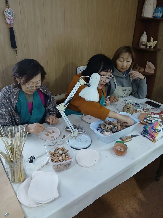 Устуудьуйа хаһаайкалара Даайа Моруот, Нина Саввина бэлэхтэри оҥорууга бэлэм туойтан анал матырыйаалынан хааччыйдылар, ыйан-кэрдэн, сүбэлээн-амалаан биэрдилэр. Иһирэх кэпсэтии быыһыгар олус диэн кэрэ бэлэхтэри оҥостон, «Эйэ» түөлбэ олохтоохторо үөрэн-көтөн астынан, сүргэлэрэ көтөҕүллэн, истиҥ айар иэйиигэ куустардылар.