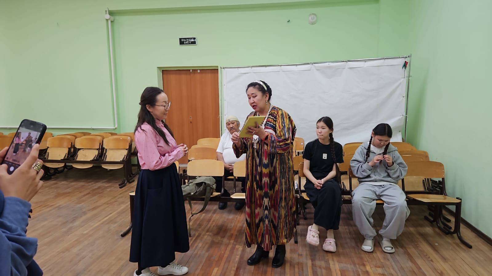 Биһиги куораттан салайааччыбыт, Оһуокай республикатааҕы түмсүү бэрэссэдээтэлэ А.Д.Данилов — Дьулуур Хаан өйөбүлүнэн үс этээччи оҕолору кытары тахсан билсистибит, маастар-кылаас биэрдибит. Кыра оҕо эрдэҕиттэн оһуокайынан утумнаахтык дьарыктанар, 11 кылаас үөрэнээччитэ Алена Колодезникова лааҕырга оһуокайбын сайыннара кэлэн дьарыктаммытым олус үчүгэй диэн санаатын үллэһиннэ. Кини учуутала Айта Егоровна ханнык ньыманан этиэххин баҕараҕын диэн эппитигэр, Алена бастакыттан таатталыы үҥкүү тылын этэргэ үөрэммит. Ааспыт сылга оҕолорго улуустааҕы күрэххэ кыайан, Александр Джурович туруорбут сүрүн бирииһин 25 тыһыынча соокуобайынан бириэмийэлэммитэ. Быйыл Үс Хатыҥ оһуокай күрэҕэр эмиэ киирэн кыттыбыта.