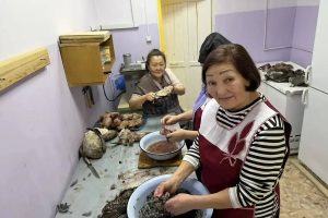 Бу күннэргэ Үөһээ Бүлүүтээҕи техникум үлэһиттэрэ уонна устудьуоннара байыаннай дьайыыга сылдьар уонна госпиталларга сытар уолаттарга барыахтаах куһу үргээн уонна астаан көмөлөстүлэр.