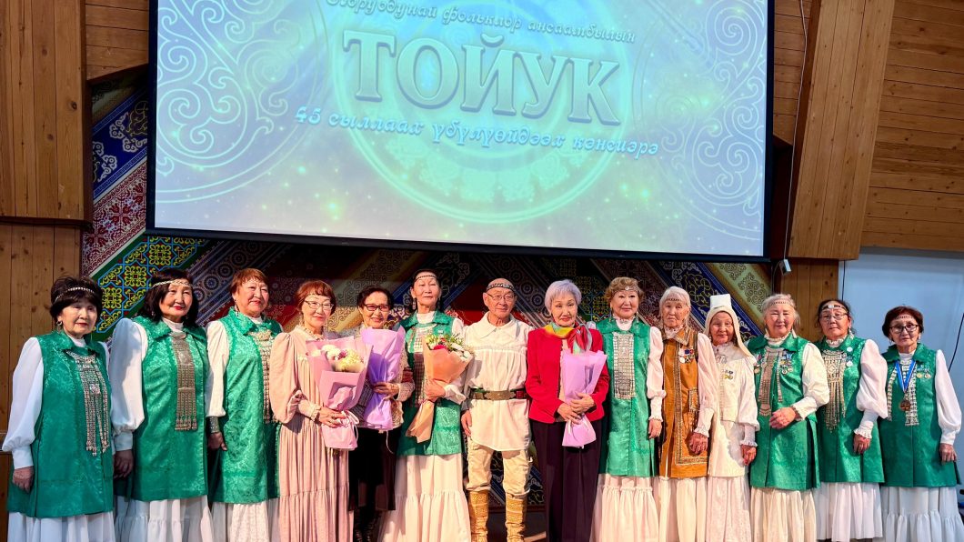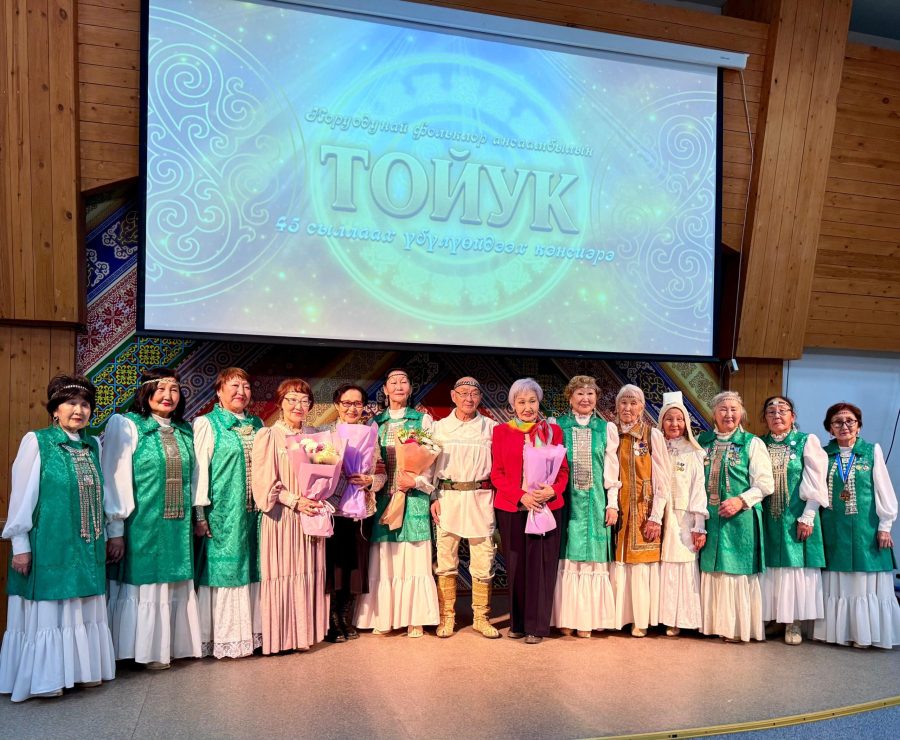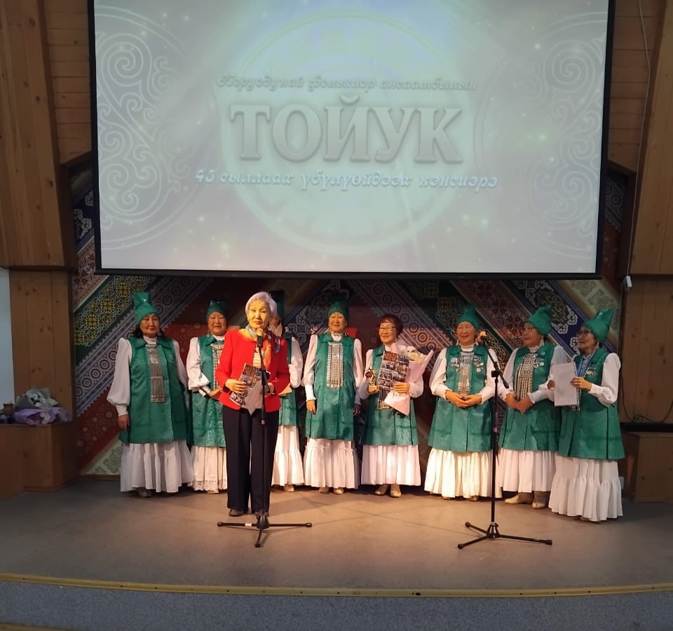 Семенова Людмила Григорьевна салайааччылаах “Тойук” фольклорнай ансаамбыл айымньылаах кэллэктиибэ: Басыгысов Юрий Николаевич, Дакаярова Сардана Иннокентьевна, Дегтярева Клара Николаевна, Иванова Ксения Ивановна, Матвеева Мария Егоровна, Платонова Любовь Иннокентьевна, Романова Ульяна Николаевна, Романова Александра Яковлевна, Соколова Валентина Николаевна, Семенов Сергей Афанасьевич, Степанова Надежда Николаевна, Шишигина Марфа Васильевна саха фольклорун жанрын: ырыаны, тойугу, олоҥхону, чабырҕаҕы, үгэни, оһуохайы, хомуһу дэгиттэр баһылааннар, ансаамбыл ыам ыйын 15 күнүгэр 2023 сыллаахха “Тойук” норуодунай фольклор ансаамбыла диэн ааты чиэстээхтик көмүскээбитэ. «Тойук норуодунай фольклор” ансаамбыла төрүттэммитэ 45 сылыгар аналлаах үбүлүөйдээх кэнсиэр 2025 сыллаахха сэтинньи 6 күнүгэр Өксөкүлээх Өлөксөй аатынан Норуоттар доҕордоһууларын дьиэтин ыалдьыттары көрсөр саалатыгар үөрүүлээх быһыыга-майгыга ыытылынна. Урут ансаамбылга салайааччынан үлэлээбит уонна ырыаһытынан сылдьыбыт ытык-мааны кырдьаҕастарбыт ыҥырыыбытын ылынан кэлэннэр, үөрэ-көтө сэргэстэһэн олороммут, арыылаах алаадьынан, сылаас үүттээх чэйинэн күндүлэнэн, уруккуну-хойуккуну кэпсэттибит, ахтылҕаммытын таһаардыбыт. СӨ үлэ бэтэрэннэ, ветеринария үтүөлээх бырааһа, ветеринария билимин хандьытаата, норуот ырыаһыта, “Тойук” ансаамбыл бэтэрээн тойуксута Ульяна Николаевна Романова “Тойук” ансаамбыл тэриллибитэ 45 сыллаах үбүлүөйдээх кэнсиэрин алгыс тойугунан арыйда.