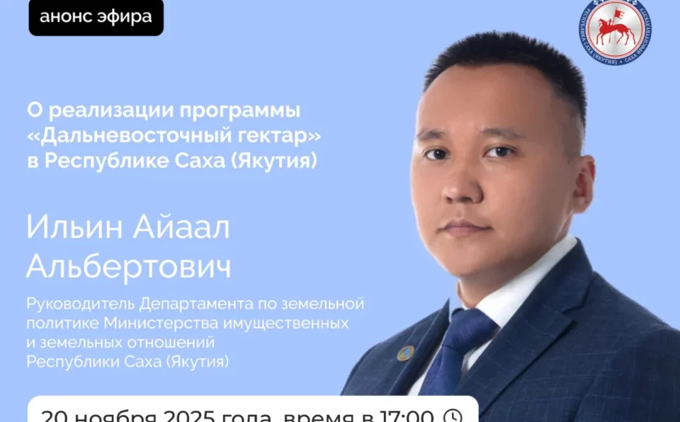 Саха Өрөспүүбүлүкэтин Баайга-дуолга уонна сир сыһыаннаһыыларыгар министиэристибэтин сир бэлиитикэтин департаменын салайааччыта Айаал Ильин бүгүн, сэтинньи 20 күнүгэр, «ВКонтакте» уонна «Одноклассники» социальнай ситимнэринэн быһа эпиири ыытыаҕа.