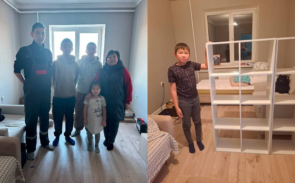 Социальнай координатор көҕүлээһининэн уонна байыаннай дьайыы бэтэрээнэ Евгений Кириллин өйөбүлүнэн, дьоруой дьиэ кэргэнигэр Тырааныспар тиэхиньикумун устудьуоннара уопсай дьиэ улахан иитээччитэ Надежда Дмитриевалыын көмөҕө кэлбиттэр. Ыччаттар наадалаах миэбэли барытын түргэнник хомуйан туруорбуттар.