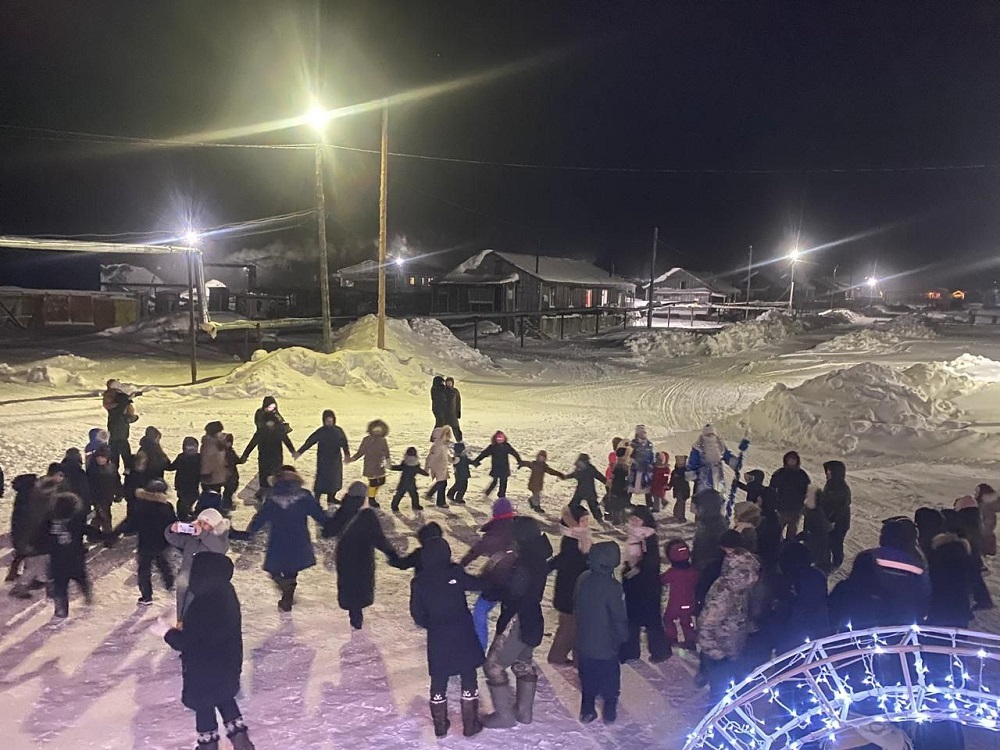 Тымныы оҕонньор сиэн кыыһын Хаарчаананы кытта эҕэрдэ тыл этэн, күндү ыалдьыт буоллулар. Оҕолорго минньигэс бэлэх туттардылар, бука бары улахан дьоннуун, оҕолуун илии тутуһан хороводтаан дуораттылар. Кэлэр сыл хас бииидии ыалга үтүөнү эрэ түстээтин, дьол тосхойдун!