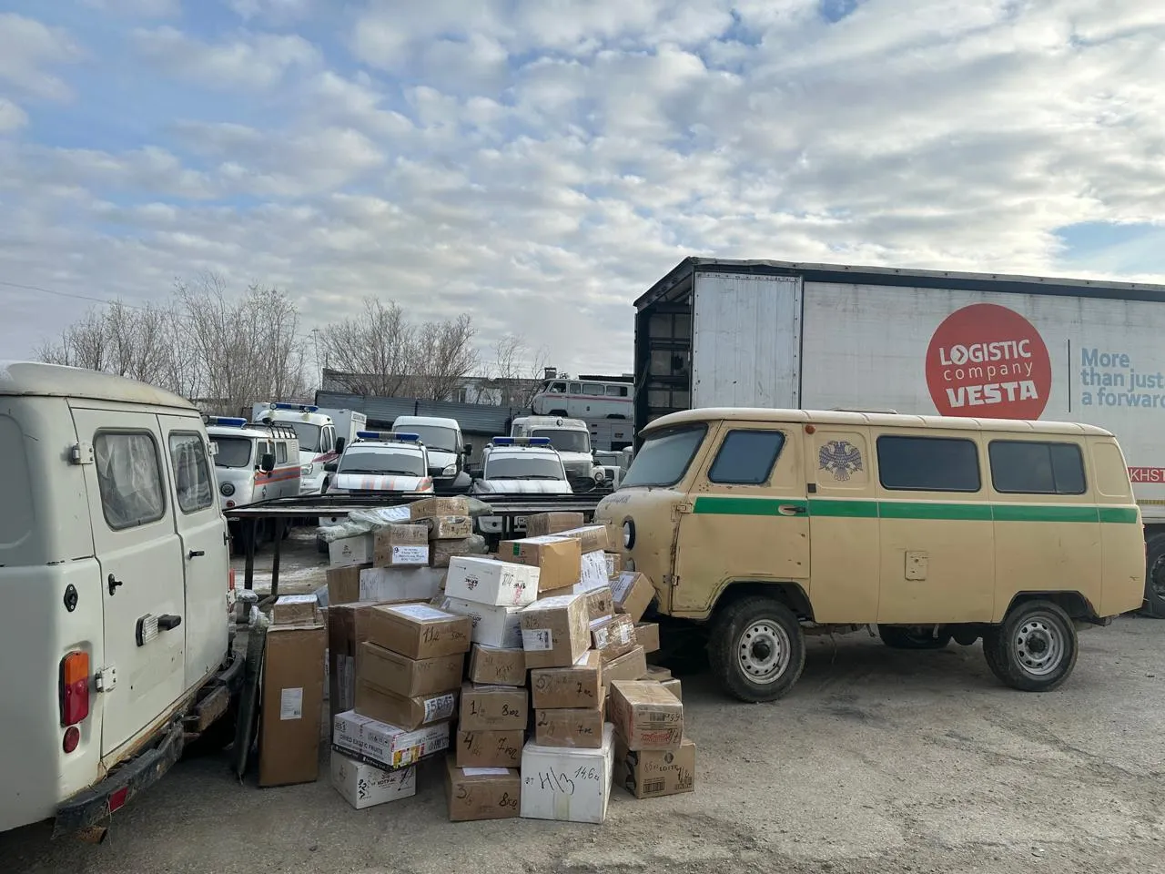 Бүгүн, алтынньы 23 күнүгэр, Дьокуускайга волонтердар тэрилтэлэриттэн гуманитарнай көмөнү уонна байыаннай дьайыы зонатыгар алта тиэхиньикэни тиэрдэргэ икки ыарахан ыйааһыннаах массыынаҕа таһаҕаһы тиэйдилэр.