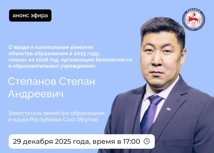Бэнидиэнньиккэ, 2025 сыл ахсынньы 29 күнүгэр, СӨ Үөрэҕин уонна наукатын миниистирин солбуйааччы Степан Андреевич Степанов Ил Дархан уонна Бырабыыталыстыба дьаһалтатын официальнай «ВКонтакте» уонна «Одноклассники» социальнай ситимнэригэр быһа эпииргэ тахсыаҕа.