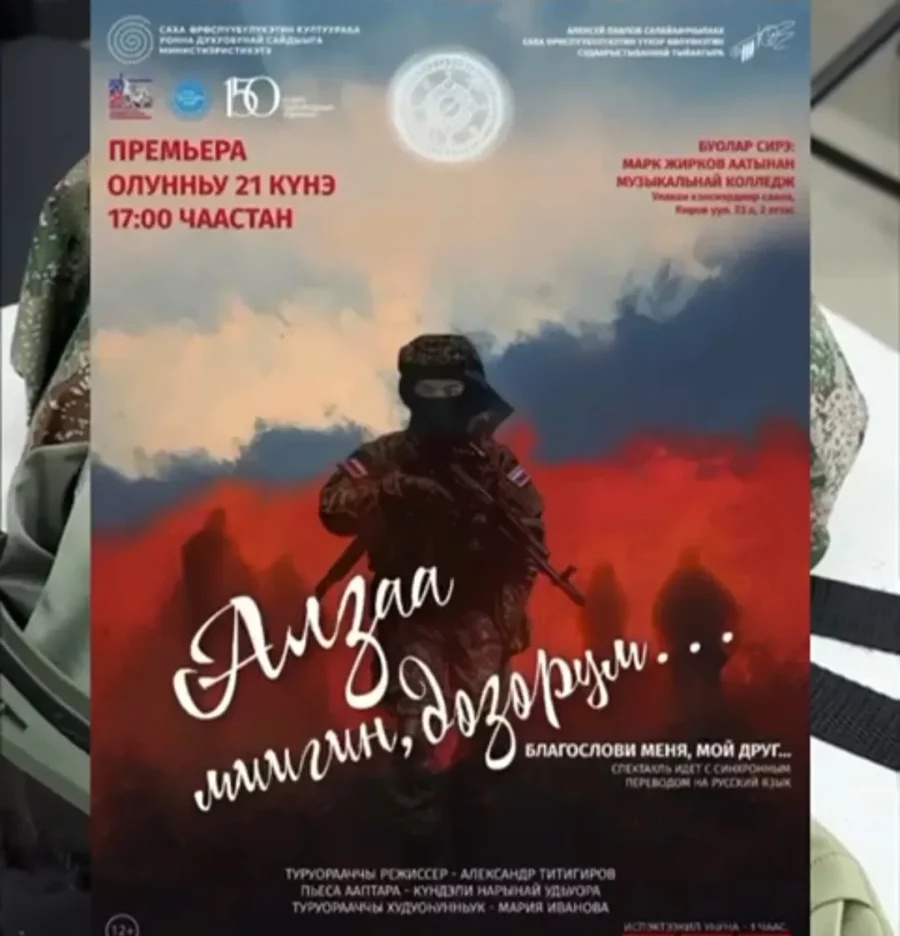 Олунньу 21 күнүгэр Саха Өрөспүүбүлүкэтин Судаарыстыбаннай Үүнэр көлүөнэ тыйаатыра байыаннай дьайыы кыттыылаахтарын хорсун быһыыларын үйэтитэр сыалтан-соруктан “Алҕаа миигин, доҕорум…” испэктээги туруораары бэлэмнэнэр.